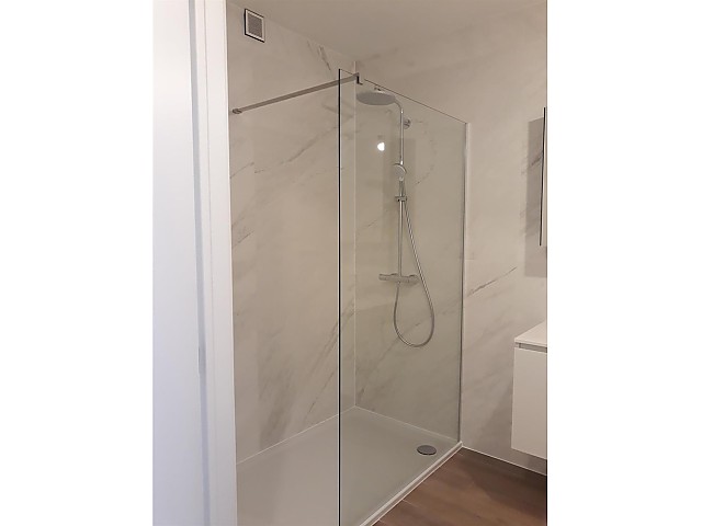 Bestaande uit inkomhal, apart toilet, living met open keuken (kasten, enkele spoelbak, keramische kookplaat, dampkap, combi oven, koelkast met vriesvak, vaatwasser), 3 slaapkamers, badkamer (inloopdouche en dubbele wastafel in meubel), bergplaats met aansluiting voor wasmachine en droogkast, private kelder nr. JB302 en ondergrondse autostandplaats nr. 40.