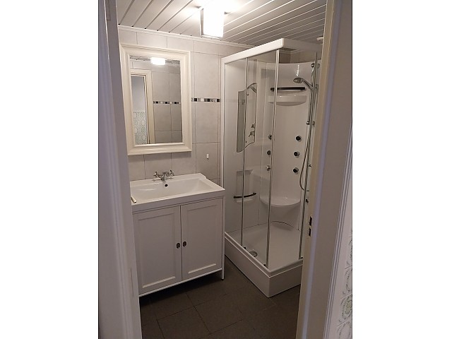Verwarming op elektriciteit (accumulatie) en elektrische verwarming in de badkamer en pelletkachel in de living.