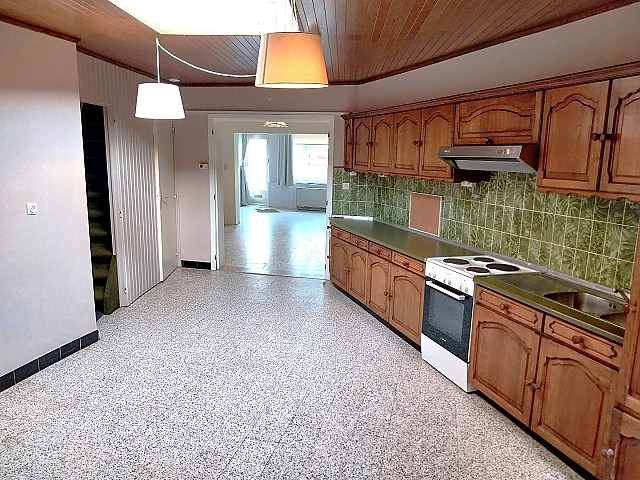 Instapklaar woonhuis (gesloten bebouwing). Bestaande uit hall, apart toilet, living met pelletkachel, keuken (kasten, dubbele afwasbak, elektrisch fornuis, oven, dampkap en koelkast), 2 slaapkamers, badkamer (douche en enkele lavabo in meubel), berging met aansluiting wasmachine en droogkast), koer en tuin.
