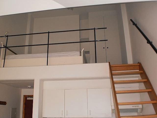 Bestaande uit hall, leefruimte met trap welke toegang geeft tot een open slaapkamer. Verder beschikt de studio over een open keuken (kasten, enkele inox afwasbak, elektrisch fornuis, dampkap, microgolfoven en koelkast), badkamer (douche, enkele lavabo, boiler en toilet).
