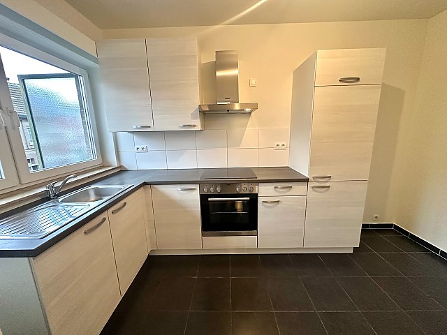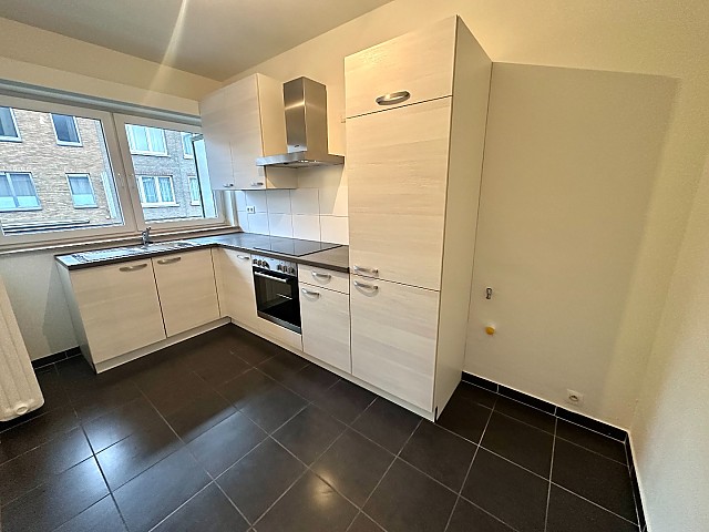 Via de inkomhal, die toegang biedt tot alle vertrekken, betreedt u het appartement. De ruime en lichtrijke leefruimte geeft toegang tot het aangename terras aan de voorzijde. Aansluitend bevindt zich de aparte, ruime keuken die enkele jaren geleden werd vernieuwd en uitgerust is met een spoelbak, koelkast, keramische kookplaat, oven en dampkap. Tevens is hier aansluiting voorzien voor een wasmachine.