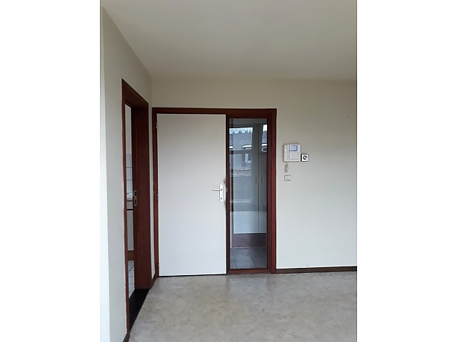 Via de inkomhal komt u in de lichtrijke leefruimte, die toegang biedt tot een gezellig terras met uitzicht op een rustige omgeving. De aparte keuken is praktisch ingericht.
