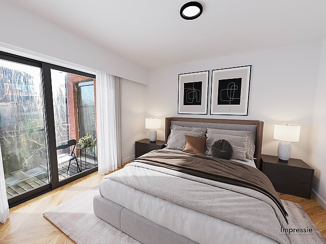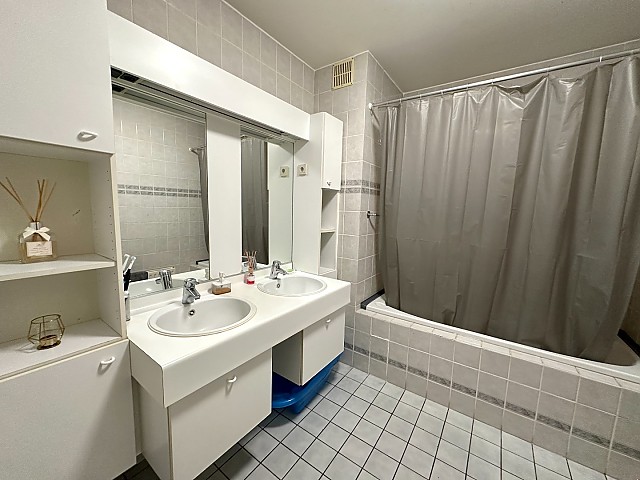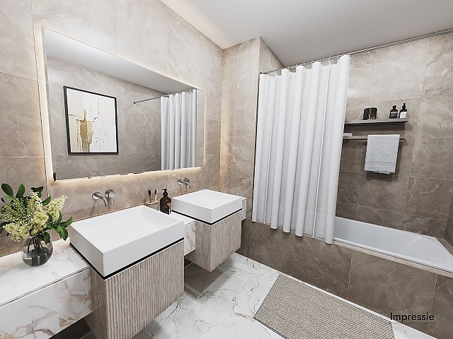 Het appartement beschikt over twee ruime slaapkamers, beide met toegang tot een tweede terras. De badkamer is voorzien van een ligbad en een dubbele wastafel. Verder is er een aparte toilet en een praktische berging in de hal.