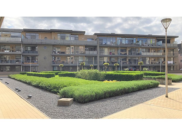 Instapklaar appartement 2°Verdieping gelegen in het centrum van Zonhoven. Bestaande uit hall, apart toilet, living met open keuken (kasten, inox afwasbak, keramische kookplaten, oven, dampkap, koelkast en vaatwas), 2 slaapkamers, badkamer (ligbad en enkele lavabo in meubel), berging met aansluiting wasmachine, terras, ondergrondse autostandplaats Nr. 56, kelder Nr. 56 en gemeenschappelijke fietsenberging en gemeenschappelijke tuin.