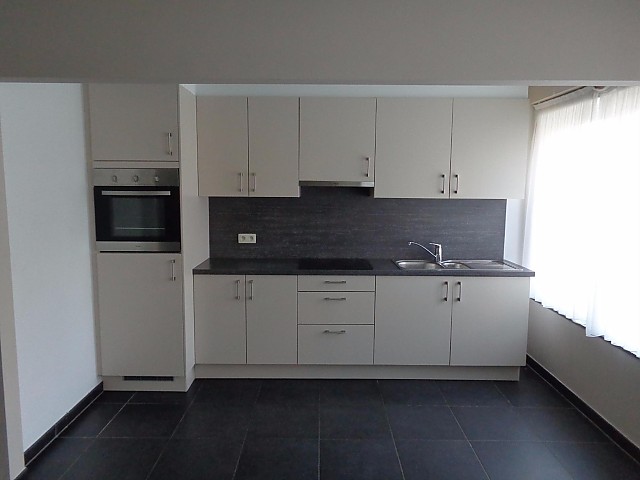 Instapklaar appartement 2e verdieping links. Bestaande uit: hall, apart toilet, living met open keuken (kasten, dubbele afwasbak, vitrokeramische kookplaten, oven, dampkap en koelkast met vriesvak), 3 slaapkamers, badkamer (douche, dubbele lavabo in meubel, toilet), terras en kelder 61/2.