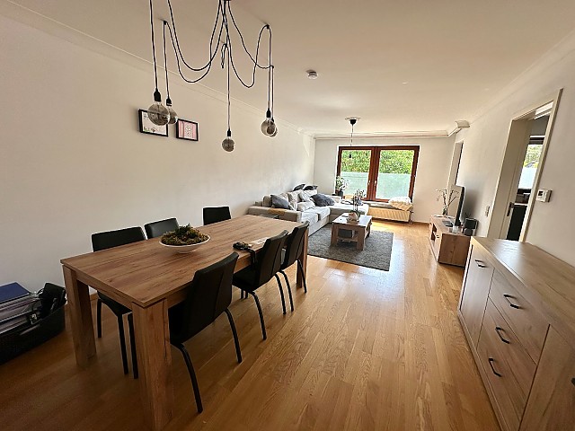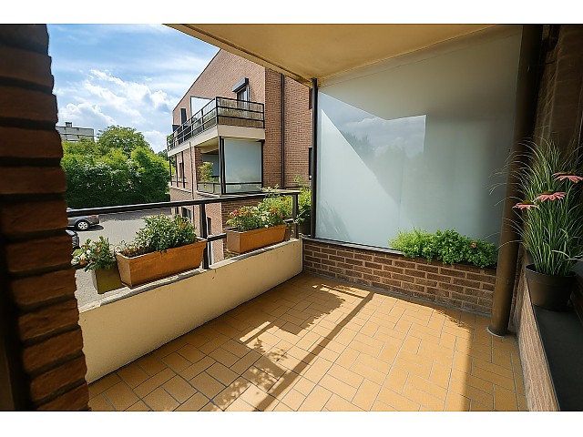 Bij binnenkomst in het appartement komt u in de ruime inkomhal die toegang geeft tot alle vertrekken. De lichtrijke woonkamer is ruim en aangenaam, met grote ramen die zorgen voor veel natuurlijk licht. Vanuit de woonkamer loopt u naar het gezellige terras, met een rustig uitzicht op het omliggende groen.