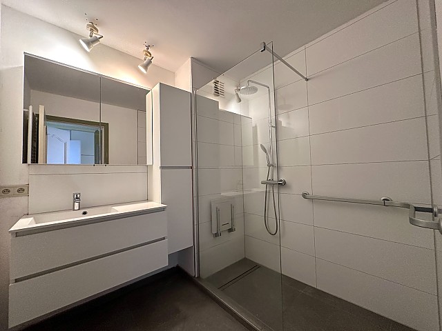 Het appartement omvat twee volwaardige slaapkamers. De recent vernieuwde badkamer is modern afgewerkt en uitgerust met een inloopdouche en een stijlvol badkamermeubel. Bovendien is er een apart toilet aanwezig.