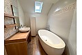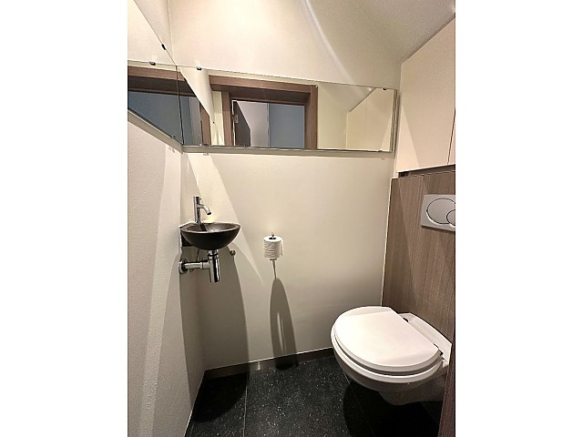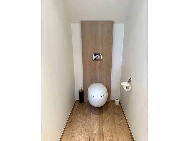 Op het verdieping vinden we een ruime slaapkamer met inbouwkasten, badkamer met ligbad, lavabo in meubel en toilet.