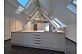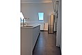 Via de woonkamer bereikt u de open, volledig uitgeruste keuken, voorzien van ingebouwde kasten, een enkele spoelbak, inductiekookplaten, een combi-oven, dampkap, koelkast met kleine diepvries en vaatwasser.