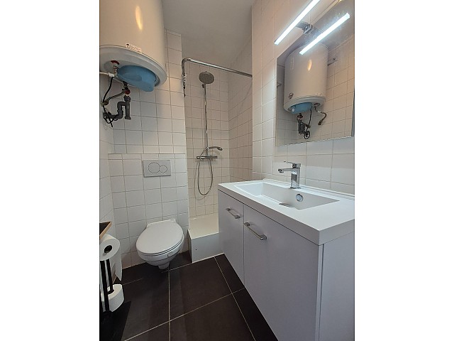 De badkamer beschikt over een douche, lavabo, boiler en toilet. Daarnaast is er een klein terras aanwezig.